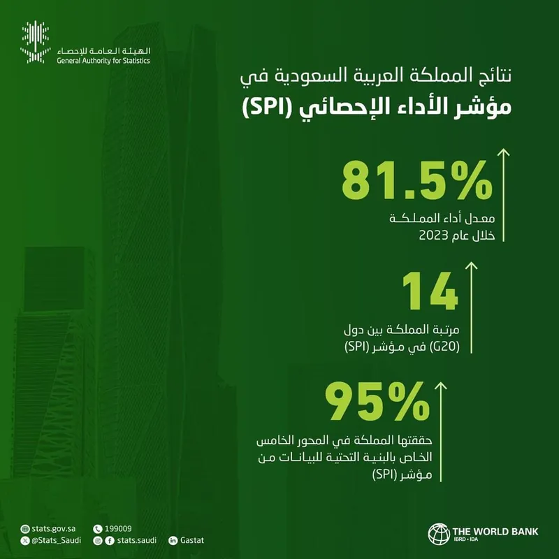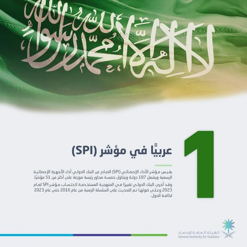 المملكة الأولى عربيًّا في مؤشر الأداء الإحصائي في عام 2023