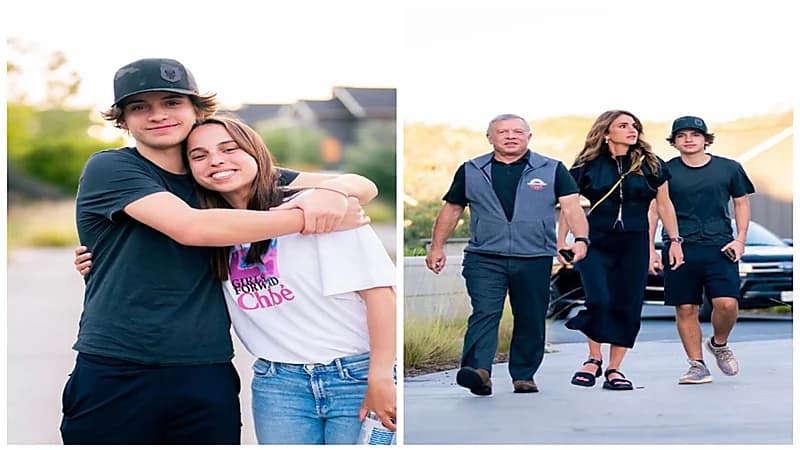 وظهر الملك عبدالله الثاني بن الحسين ملك الأردن رفقة زوجته الملكة رانيا ونجله الأمير هاشم، فيما جمعت لقطة أخرى الأميرة سلمى بنت عبدالله الثاني وهي تحتضن شقيقها الأمير هاشم في مشهد خطف القلوب.