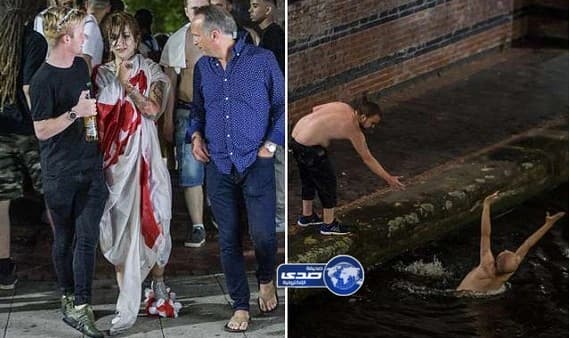 بالصور.. الإنجليز يرمون أنفسهم في القنوات المائية ويتسلقون إشارات المرور بعد الخروج من المونديال