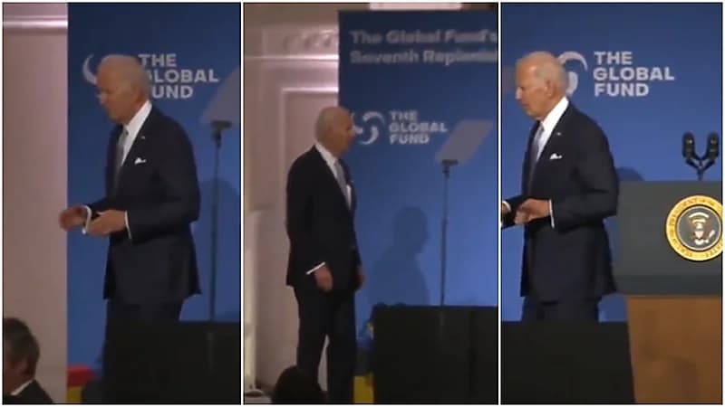 ووثقت الكاميرات ظهور الرئيس الأمريكي وتصرفه بغرابة أمام المنصة، فبدلا من الانصراف مباشرة ظهر تائها لا يعلم من أين يذهب ويستدير حول نفسه.