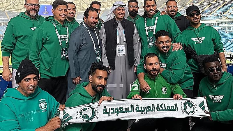وزير الإعلام الكويتي يلتقط صورة تذكارية مع رابطة جماهير الأخضر